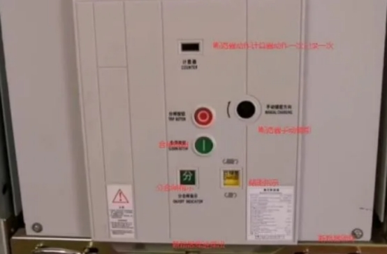 1,斷路器在分閘已儲(chǔ)能狀況,儲(chǔ)能指示顯現(xiàn)已儲(chǔ)能,儲(chǔ)能繃簧已擺開(kāi),面板得合閘按鈕在上圖中的下孔中,假如斷路器未儲(chǔ)能是合不了閘的