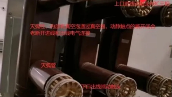滅弧柱內(nèi)部有真空泡,經(jīng)過(guò)真空泡完結(jié)動(dòng)靜觸點(diǎn)分合,來(lái)分合進(jìn)線和出線得電氣銜接