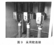 (2)穿墻套管下部與電纜銅搭子導體部分連接采用軟連接過渡,如圖9所示,可以去除硬連接產生的應力,同時消除電纜通電后產生的電動力,隔絕了對穿墻套管的應力作用。