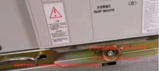6,上圖為斷路器本體鎖環(huán),圖中為斷路器實(shí)驗(yàn)方位,從檢修方位推入實(shí)驗(yàn)方位時(shí),把兩端鎖環(huán)往中心推把鎖環(huán)翻開,推入到實(shí)驗(yàn)方位時(shí),松開鎖環(huán)鎖環(huán)就翻開鎖在實(shí)驗(yàn)方位,當(dāng)要從實(shí)驗(yàn)方位推入到作業(yè)方位時(shí),將兩端鎖環(huán)往中心推翻開鎖環(huán),這時(shí)順時(shí)針搖入斷路器到作業(yè)方位。