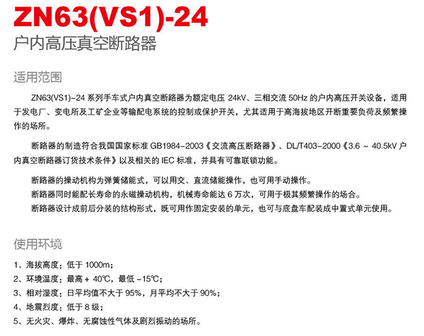 ZN63(VS1)-24戶(hù)內(nèi)高壓真空斷路器